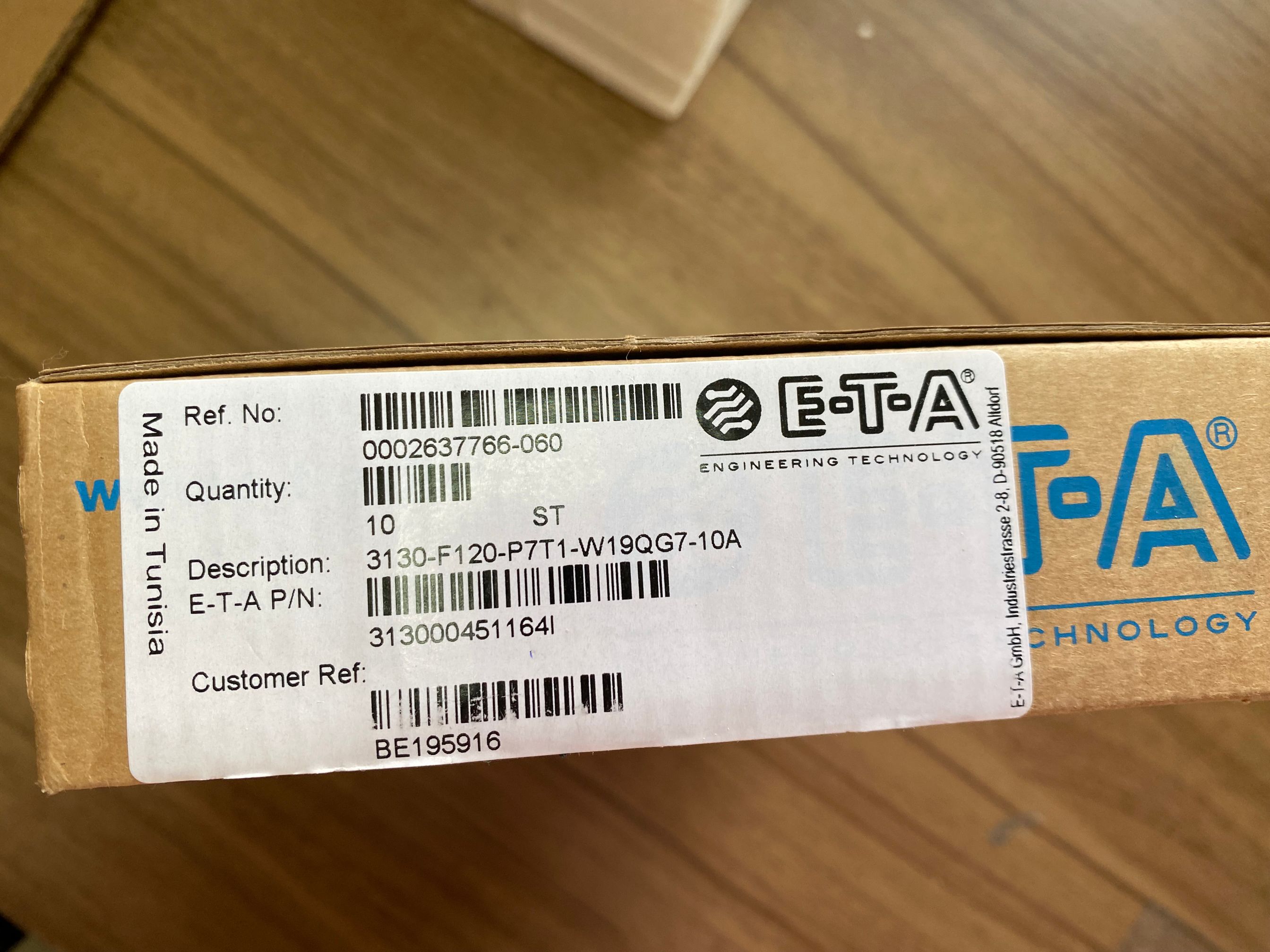ETA 3120-F521-P7T1-W04J X3120-M2P7M-24V 10A AC240V DC50V 16446